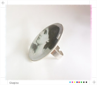Partiamo con il grande anello ovale per il quale ho utilizzato una base anello ovale in metallo sulla quale ho applicato il ritratto ricoprendolo con il vetro bombato.