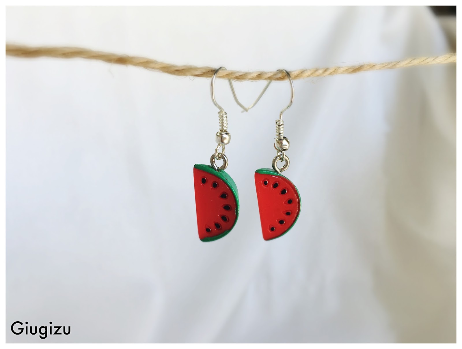 | Orecchini Watermelon kind of day (monachelle in metallo, charms in resina) - Watermelon kind of day earrings (metal hook, resin charms) |