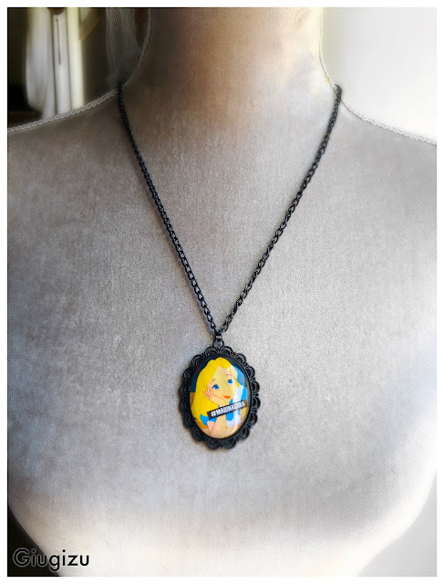 | Anello Alice mai una gioia (base per anello in metallo color nero 30x40mm, copertura in vetro bombato) - Never a joy Alice necklace (Black metal 40x30mm ring base, domed glass cover) |